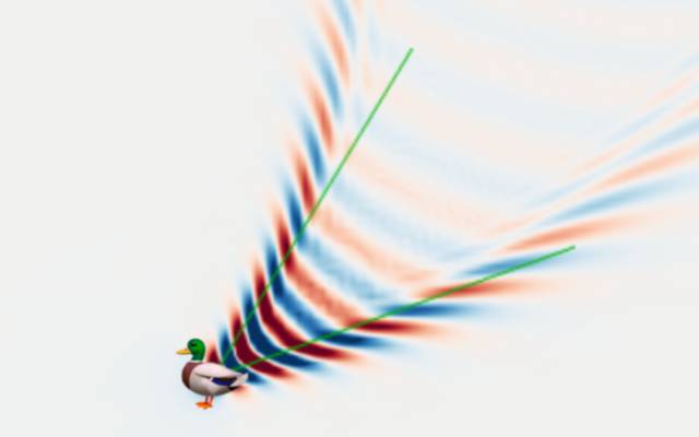 I was quite surprised to learn that while Mach angles depend on an object’s speed, surface waves in water work differently and form a wake which doesn’t depend on the speed!